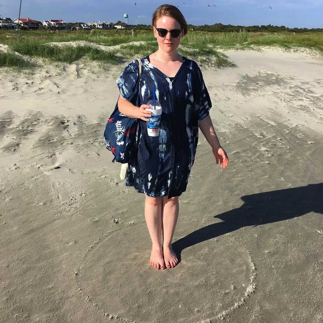 Birthday beach weetch finds magic circle in sand, a gift from the following aspects of the goddess: wind, seagulls, and Belinda Carlisle.